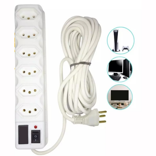 Régua de Tomadas Tripolar com Fusível 6 Entradas 10A